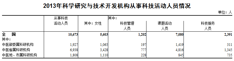 2013年科学研究与技术开发机构从事科技活动人员情况