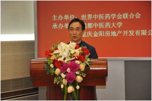 图为世界中医药学会联合会养生专业委员会会长马烈光致辞