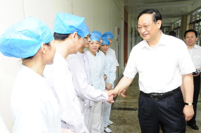 王国强副主任在惠州市中心人民医院慰问医护人员(图片来源:国家卫生计生委网站)