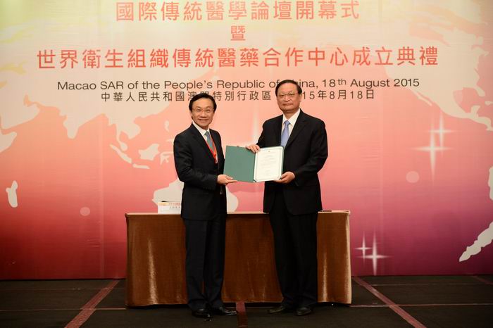 8月18日,由澳门特别行政区政府主办、世界卫生组织和国家中医药管理局共同协办的国际传统医学论坛在澳门召开。世界卫生组织传统医药合作中心同期成立。世界卫生组织总干事陈冯富珍,澳门特别行政区代理行政长官黄少泽,国家卫生计生委副主任、国家中医药管理局局长王国强出席并讲话。来自27个国家和地区的卫生部部长、传统医学官员以及专家学者近300人出席论坛。