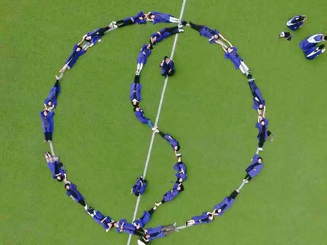 辽宁中医药大学毕业生在操场摆出太极图造型。 辽宁中医药大学提供