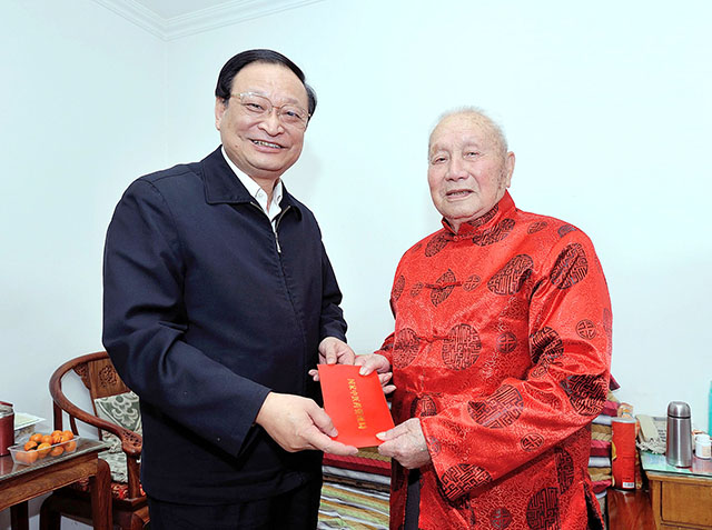 王国强详细询问了陈阳和的生活起居,叮嘱老人要保持良好心态,注重养生,安度晚年,并祝他春节快乐,健康长寿。