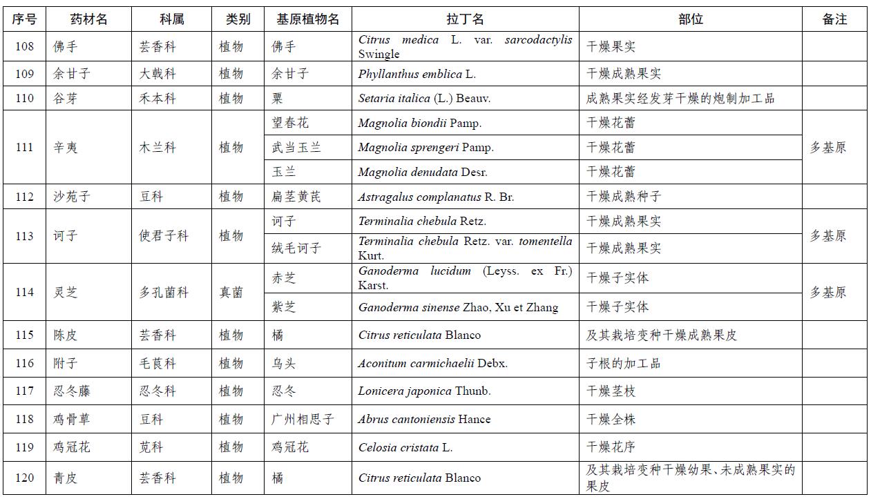 注1:中药资源基原物种分类信息以《中国植物志》《中国动物志》以及具有同等效力的分类学专著的名称为准,名称有更新的以最新名称为准,拉丁名应遵循双名法。具有种下分类单元或栽培品种或品系的应进一步详述。
