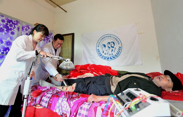 图①重庆市璧山区人民医院组织中医专家、医学博士志愿服务队,走进健龙镇弥勒村为13户贫困家庭免费开展中医康复进农户和节前慰问活动,上门为贫困村民进行康复治疗。