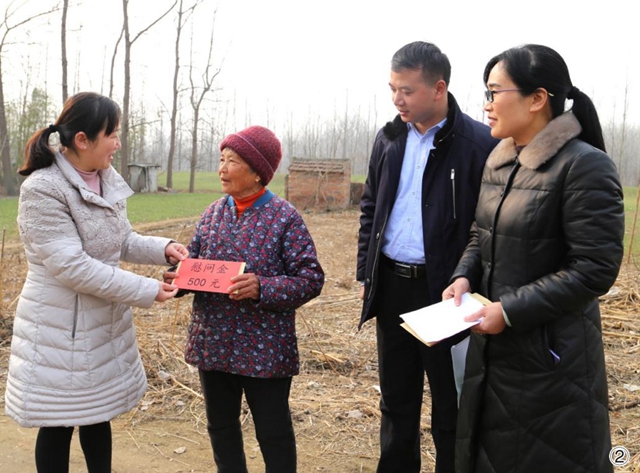 图③江苏省宿迁市中医院党委组织党员干部职工一行30余人,到宿豫区丁嘴镇苗冲村开展走访慰问活动,给结对帮扶的65户低收入户送上新年祝福和共计8700元慰问金。