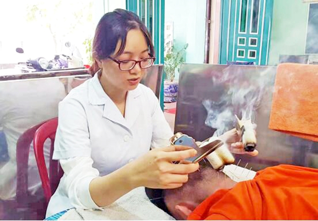 越南胡志明市一家推拿馆,近来新增了热敏灸特色服务,吸引了众多患者前来体验——