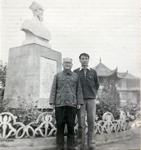 20世纪80年代,仝小林(右一)与李济仁(左一)到蕲春拜谒李时珍。 受访者供图
