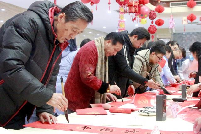 近日,宁夏中医医院暨中医研究院邀请宁夏书法家协会、宁夏青年书法家协会等机构的14位书法家到该院开展“同心同书 祖国新春好”书法家送万福活动,现场为该院职工、患者题写春联。图为活动现场。 通讯员 罗政锋/摄