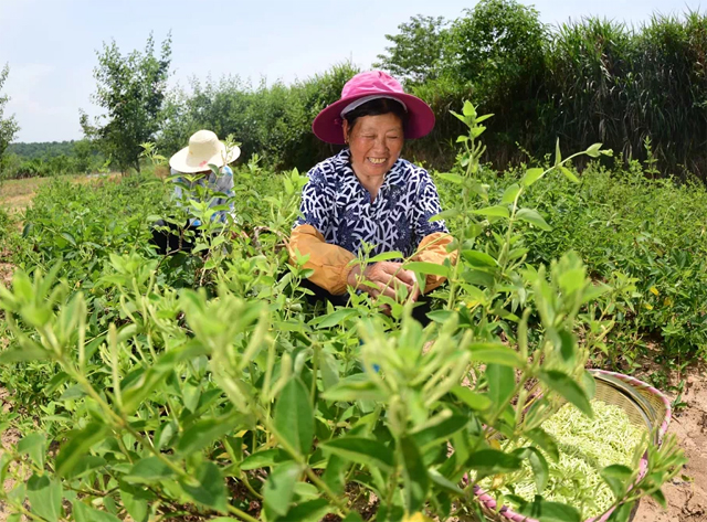 九江金蕾中药材种植专业合作社里金银花花开正盛