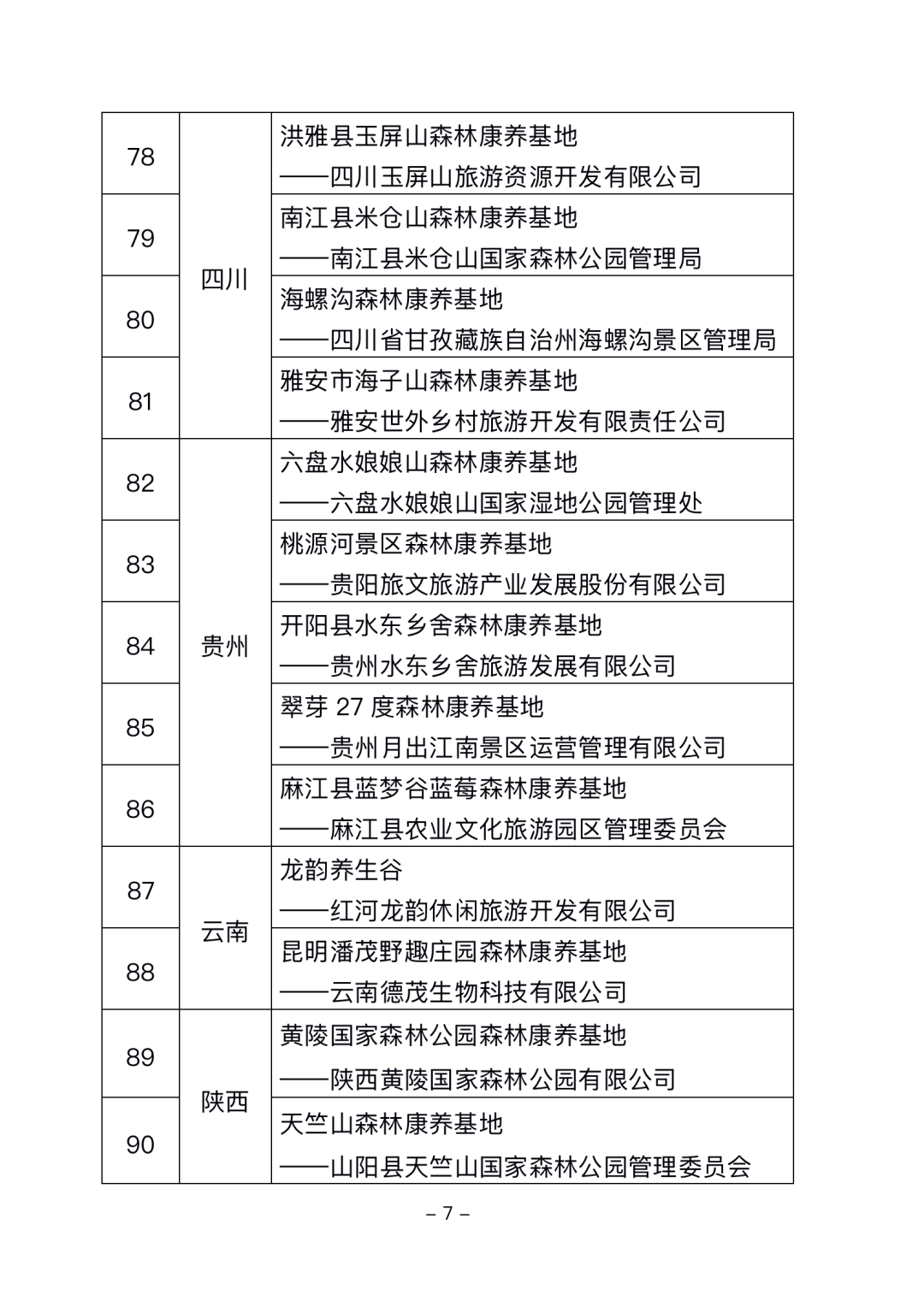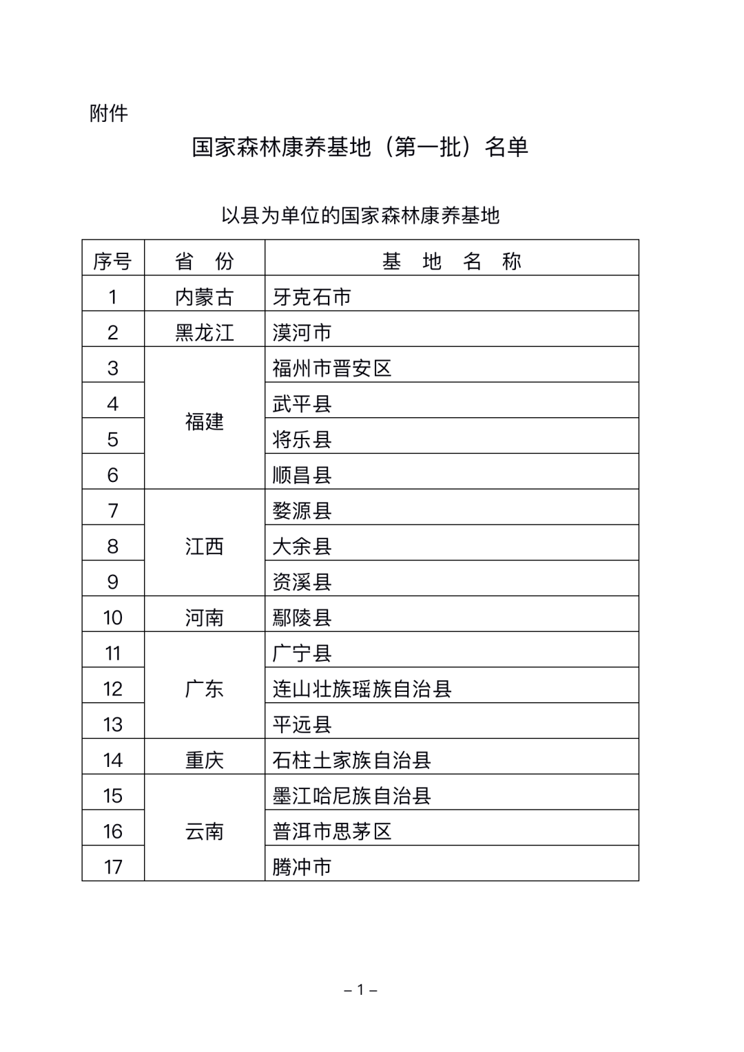 国家林业和草原局办公室 民政部办公厅 国家卫生健康委员会办公厅 国家中医药管理局办公室 关于公布国家森林康养基地(第一批)名单的通知