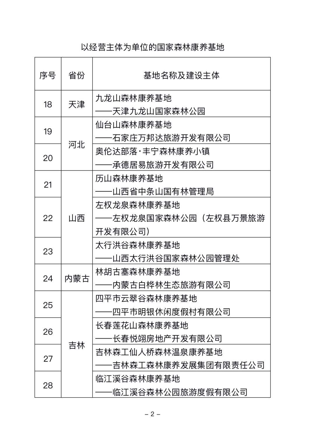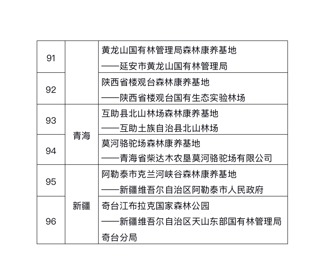 近日,国家林草局办公室、民政部办公厅、国家卫生健康委办公厅、国家中医药局办公室联合发布《关于公布国家森林康养基地(第一批)名单的通知》,公布内蒙古牙克石市、天津市九龙山森林康养基地等96家第一批国家森林康养基地。