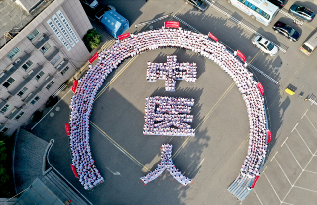 6月6日,湖北省中医院1500名参与抗疫一线的职工合影,摆出“中医人”字样,纪念中医人在抗击新冠肺炎疫情中的担当奉献。