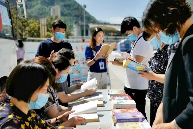 日前,陕西省镇巴县中医院联合镇巴县图书馆在该院院前广场设立流动图书馆,建设中医药健康文化知识角,推动全民悦读中医,提升民众中医药健康文化素养。 图为当地群众在流动图书馆前阅读。 通讯员 魏剑/摄