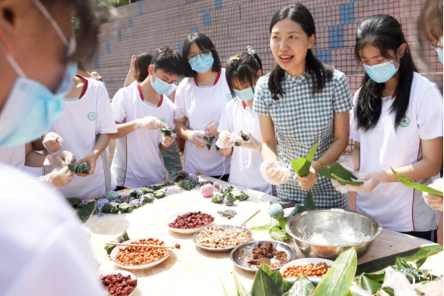 6月19日,重庆市南岸区卫生健康委和南岸区教委在重庆第八十四中举办 “中医药文化进校园” 主题活动,师生们在重庆医科大学中医药学院中医药文化专家的指导下包药粽、制作香包等,专家还结合夏至节气讲解鹿角、半夏、蝉蜕等中药材知识。