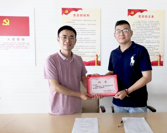 图为马力(右)接受聘书。 张林昌/摄