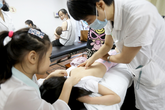 浙江省中医院推拿科医生为患儿进行推拿治疗