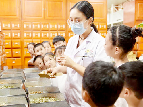 日前,安徽亳州市中医院迎来一批特殊的参观者,60余名该院职工子女在这里开启了中医药文化学习体验之旅。“医二代”们来到父母工作的地方,在中药房观看抓药、称药的过程。他们一边辨识草药,一边津津有味地聆听中草药背后的小故事。 邓君梅/摄