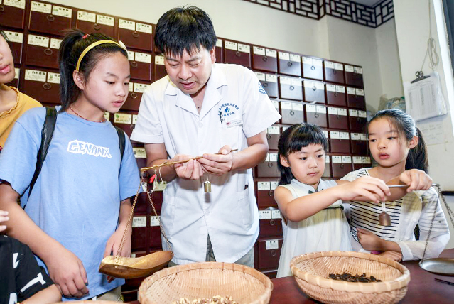 8月21日,浙江省湖州市长兴县李家巷镇中心幼儿园、中心小学与长兴县中医院李家巷分院共同开展以中药及凉茶为主题的暑期大课堂。参加活动的孩子们在长兴县中医院医师的带领下,了解中医药相关知识,并选取、称量药材泡制凉茶。
