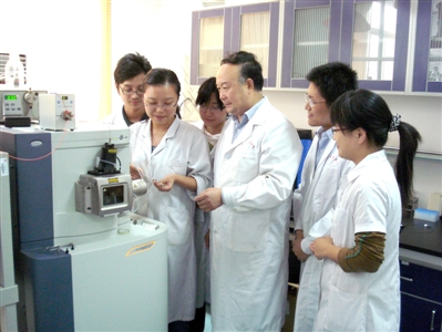 段金廒教授指导研究生开展科学研究。 今年是南京中医药大学药学院建院60周年。