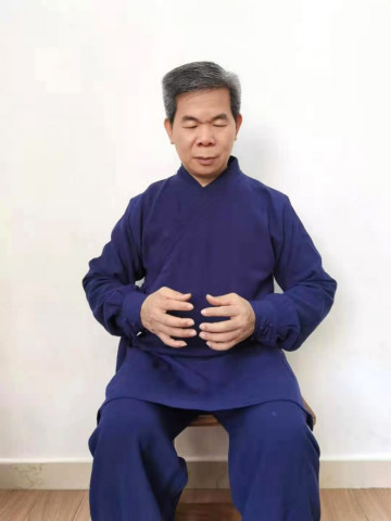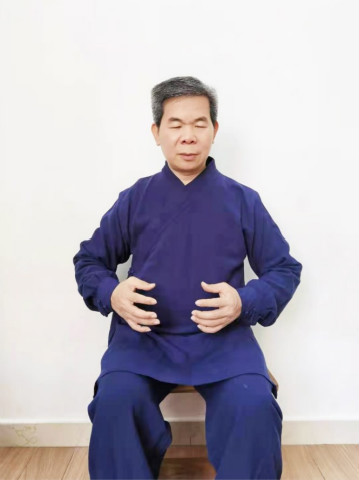 如果是正式练功,最后要收功,收功时两手拢气回收,掌心重叠(男性左手在里面,女性右手在里面),敷于肚脐,安静养气片刻即可。不是正式练习,可以不用专门收功。(田瑞林)