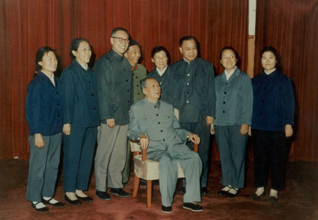 1975年,毛泽东主席(前)手术后与唐由之(左三)等医疗人员合影。