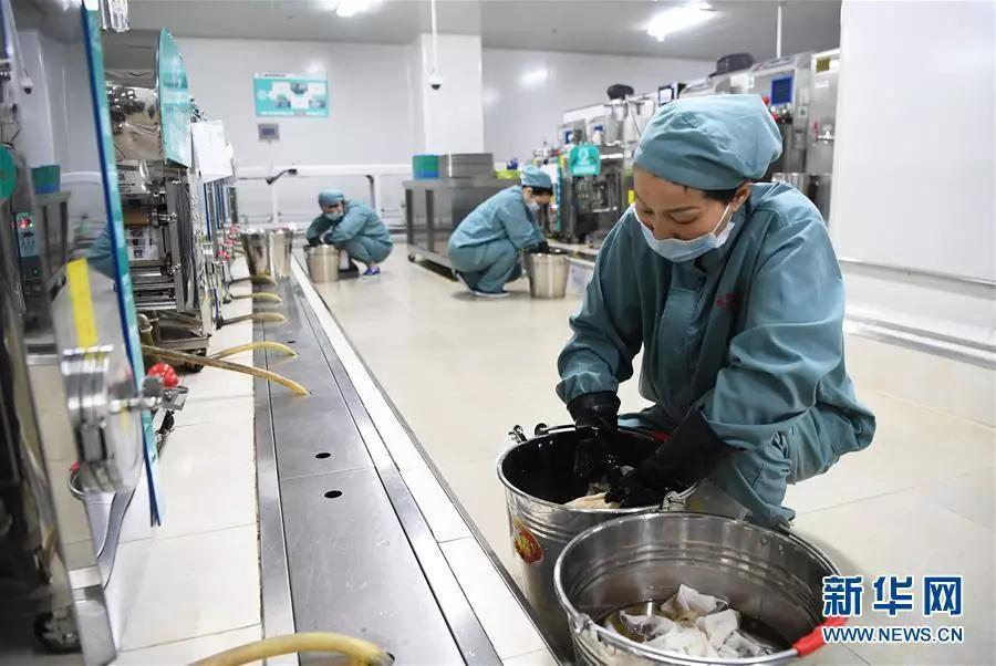 2018年5月起,重庆市中医院与康美智慧药房合作,打造智慧药房一站式服务平台。有需要的患者在交费后只要拿着处方到“智慧医疗服务区”录入地址信息,就可以回家等候药品。这是煎药员在智慧药房内对浸泡过程中的中药材进行揉搓(2018年11月9日摄)。新华社记者 王全超 摄