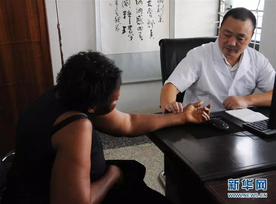 加纳新东方医院的医生为一名前来就诊的女士把脉(2013年1月9日摄)。新华社记者 邵海军 摄