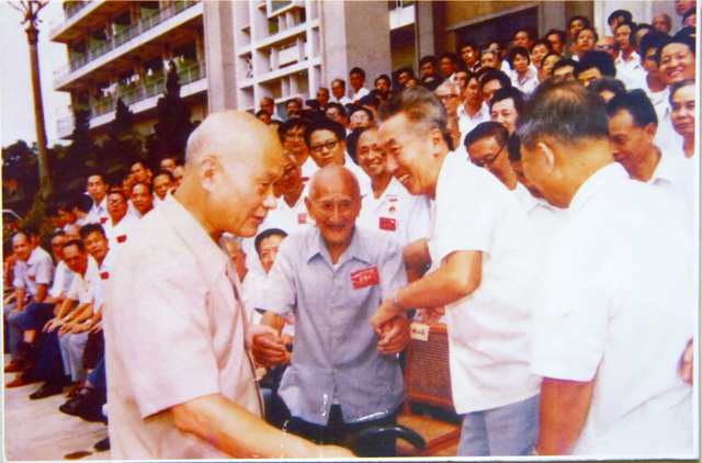 1985年福建省振兴中医大会,时任福建省委书记项南(左一)、原卫生部中医司田景福司长(右二)、林如高老中医(左二)在会上。