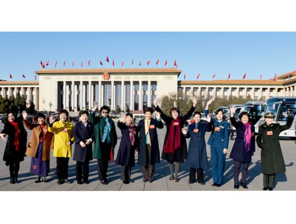 出席全国政协会议的医卫界部分女委员,在人民大会堂前向全国女同胞致以节日的问候