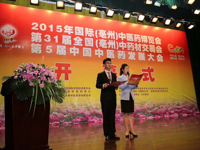 我宣布,2015年国际(亳州)中医药博览会、第31届全国(亳州)中药材交易会、第5届中国中医药发展大会现在开幕。