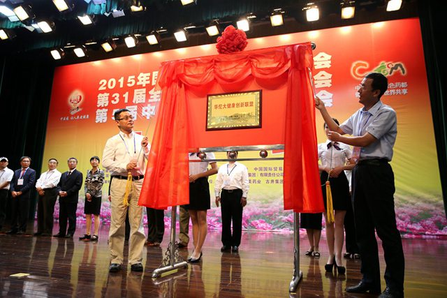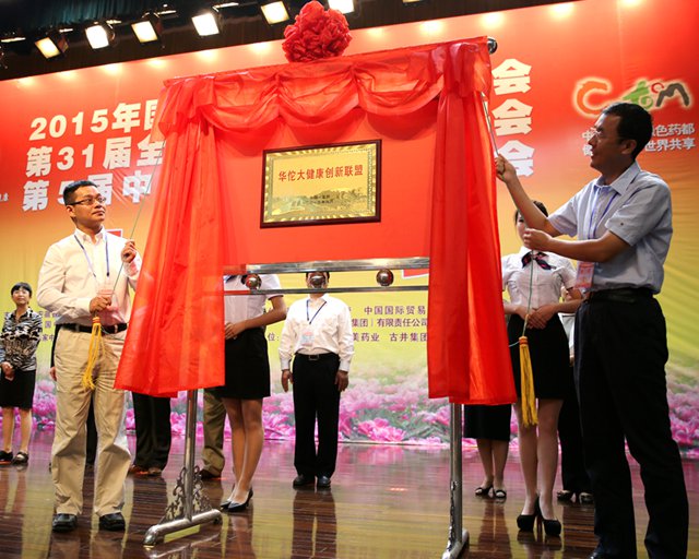 下面,我们有请中国中医药报社社长王淑军先生、安徽省中医药管理局董明培先生,为华佗大健康创新联盟揭牌,大家欢迎。