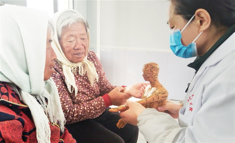 山东省淄博市高青县黑里寨中心卫生院家庭医生为群众科普中医保健穴位