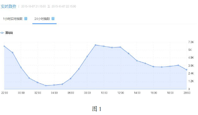 新浪微博平台,10月6日“屠呦呦”的单日热词搜索峰值为36.8万,其中最近24小时(6日22时——7日22时)搜索走势如图1: