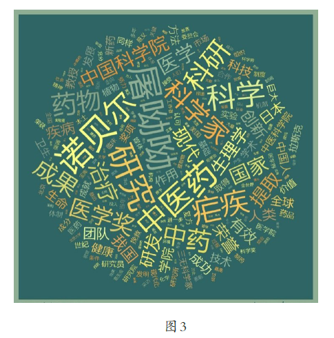 通过上述可视化呈现,不难看出中医药、中药、中医科学院等字词出现频率很高,至少客观说明媒体报道对于诺奖与中医药关系做了较为密集的报道,这也是引发舆论关注的重要原因之一。