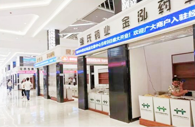 在2019年国际(亳州)中医药博览会暨第35届全国(亳州)中药材交易会期间,亳州中药材商品交易中心9月9日开业。当天,该中心交易大厅的中药饮片电商展示大厅、贵细精品区、现货集中采购区、标样展示交易区、道地药材展销区(智慧药市体验区)、药食同源花茶区,各个业态商户均已入驻经营。