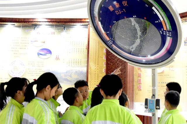 近日,吉林省中医药学会组织吉林省长春市华岳小学学生参观长春中医药大学五运六气示教馆,展现中医药魅力,传播中医药文化。图为学生参观星象仪。王 愉摄