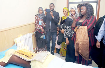 10月25日,非洲冈比亚的医疗同行来到陕中二附院参观学习,图为他们在体验中医传统“火龙灸”。