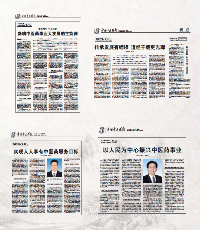 其中,10月30日刊发的山东省副省长孙继业《以人民为中心振兴中医药事业》提出,山东要以此次大会为契机,尽快研究贯彻落实大会和《意见》精神,全面深化中医药改革,深入推进中医药强省建设,更好地为人民健康服务,促进山东经济社会发展。