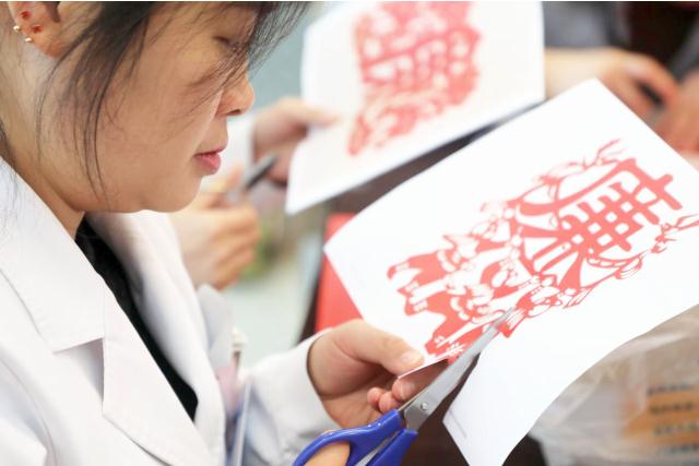 1月17日,浙江省嘉兴市中医医院开展“清廉医院 你我同行”活动。该院医护人员通过制作“廉”字剪纸,推进廉政文化建设,营造风清气正的良好环境和氛围。图为该院医护人员制作“廉”字剪纸。 通讯员 宋江胜/摄