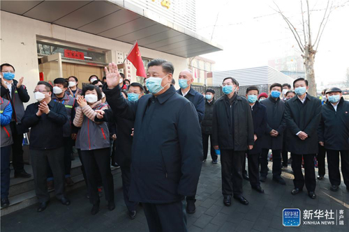 2月10日,中共中央总书记、国家主席、中央军委主席习近平在北京调研指导新冠肺炎疫情防控工作。这是习近平在朝阳区安贞街道安华里社区,了解基层一线疫情联防联控情况。新华社记者 庞兴雷 摄