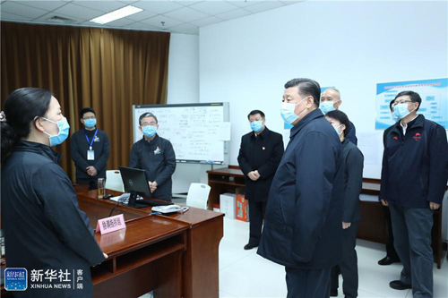 2月10日,中共中央总书记、国家主席、中央军委主席习近平在北京调研指导新冠肺炎疫情防控工作。这是习近平在朝阳区疾病预防控制中心调研。新华社记者 刘彬 摄