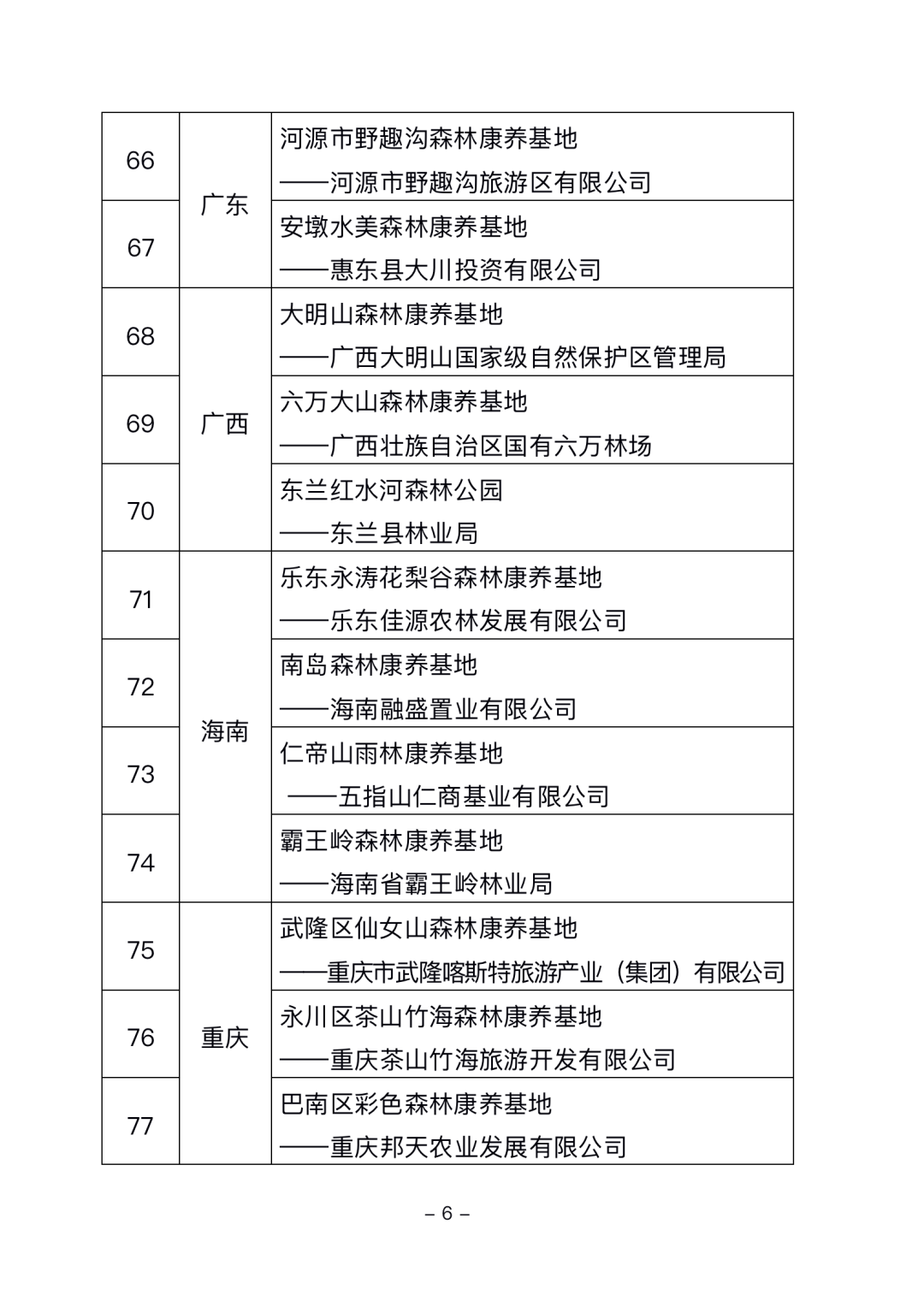 国家林业和草原局办公室 民政部办公厅 国家卫生健康委员会办公厅 国家中医药管理局办公室 关于公布国家森林康养基地(第一批)名单的通知