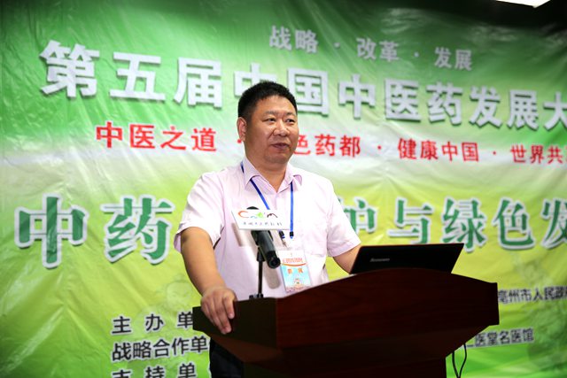 中华中医药学会药房管理分会主任委员曹俊岭在分论坛一上做报告