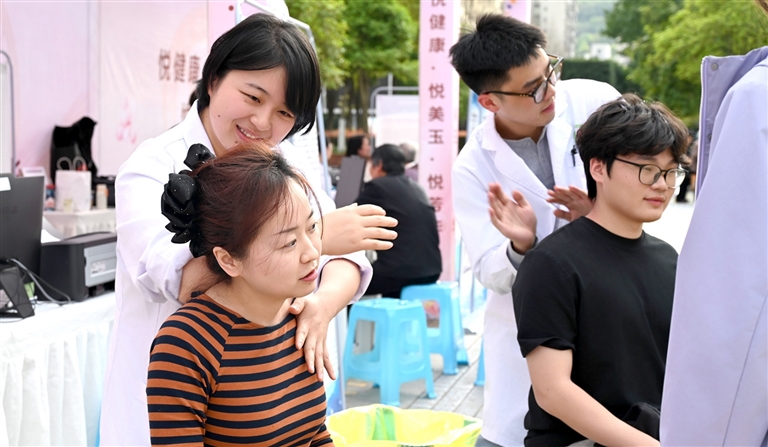 重庆市江津区中医院医生为市民进行肩颈推拿