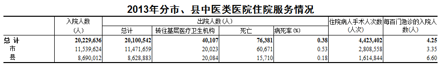 2013年分市、县中医类医院住院服务情况