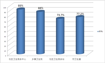 2012年至今,省、市、县各级财政支持基层中医药服务体系建设资金达7.97亿元,中央财政支持9143万元,合计8.89亿元。2014年能提供中医药服务的社区卫生服务中心、乡镇卫生院、社区卫生服务站和村卫生室分别达到93%、88%、73.7%、77.2%,较2012年分别上升10.5%、7%、5.7%、15.6%。(见下图)