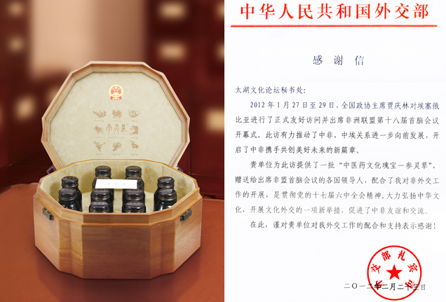 外交部礼宾司将参灵草作为国礼赠给174位外交使节及国际组织代表。