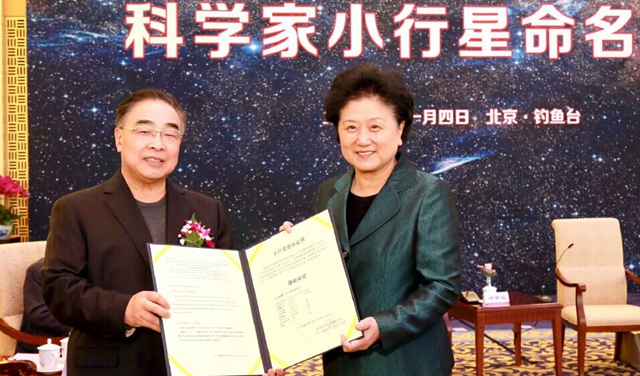 本报讯 (记者冯 磊)1月4日,科学家小行星命名仪式在钓鱼台国宾馆举办,屠呦呦、谢家麟、吴良镛、郑哲敏、张存浩等五位著名科学家被命名。其中,第31230号小行星永久命名为“屠呦呦星”。