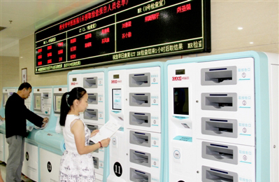 西安市中医医院通过信息化手段,让检查、拍片、化验等环节也变得舒心起来。所有的检查项目分布在门诊大楼一层,墙上处处有屏幕,医生开出检查单后,病人到相应科室门口,屏幕自动显示排队顺序。患者做完检查,当看到相应屏幕上显示自己姓名后,到自助设备前,凭条码、一卡通即可打印检验、检查报告单、X线片。