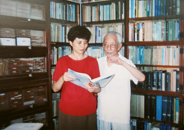 干祖望和女儿干千在茧斋看书